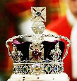 La couronne, refaite en 1838 pour la reine Victoria serait la plus précieuse du monde : elle comprend 4 rubis dont le "Prince noir" placé au centre, 11 émeraudes, 16 saphirs (dont le saphir des Stuarts), 277 perles et 2 783 diamants (dont un des plus gros fragments du Star of Africa) ; la reine la porte pour le couronnement et l'ouverture du Parlement. Il a donc fallu attendre les progrès de la physique et de la chimie pour s'apercevoir que ce "Rubis" célèbre, était un "Spinelle"